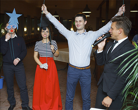 Все это перемежается подобранными по Вашему усмотрению забавными тематическими викторинами ( более десятка на выбор ), безобидными и веселыми конкурсами ( более трех десятков наименований ), лирическими музыкальными интермедиями и зажигательными танцами. На месте усидеть будет не просто!